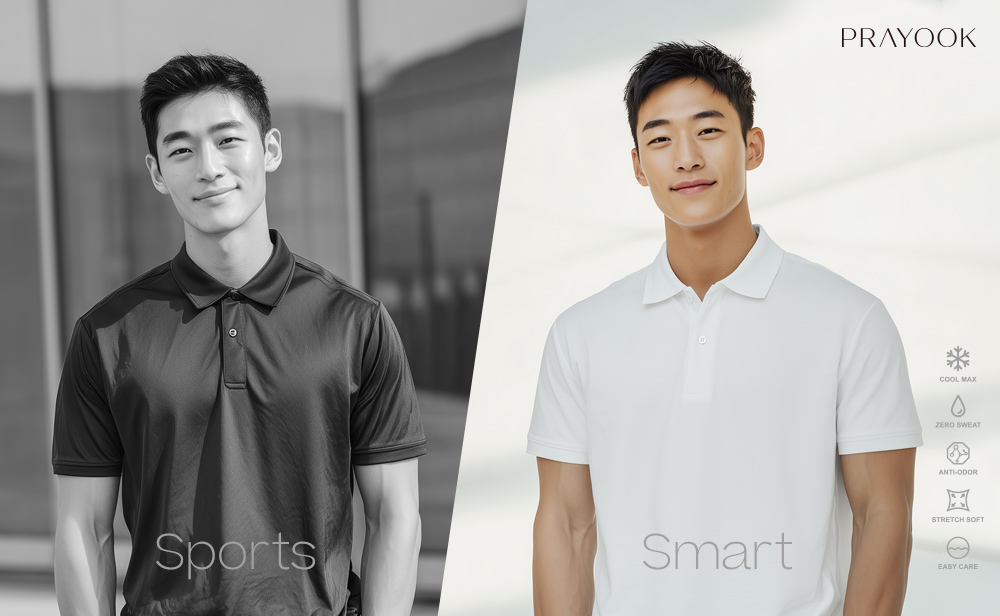 เนื้อผ้า Polyester แม้จะระบายเหงื่อดี แต่สัมผัสต่างจาก Cotton อย่างชัดเจน เสื้อที่มีโครงสร้างดี ช่วยให้ทรงเสื้อ “นิ่ง” ทำให้ผู้สวมใส่ดูภูมิฐานขึ้นโดยอัตโนมัติ และความมั่นใจของพนักงาน สะท้อนกลับมาเป็นภาพลักษณ์ของแบรนด์เสมอ